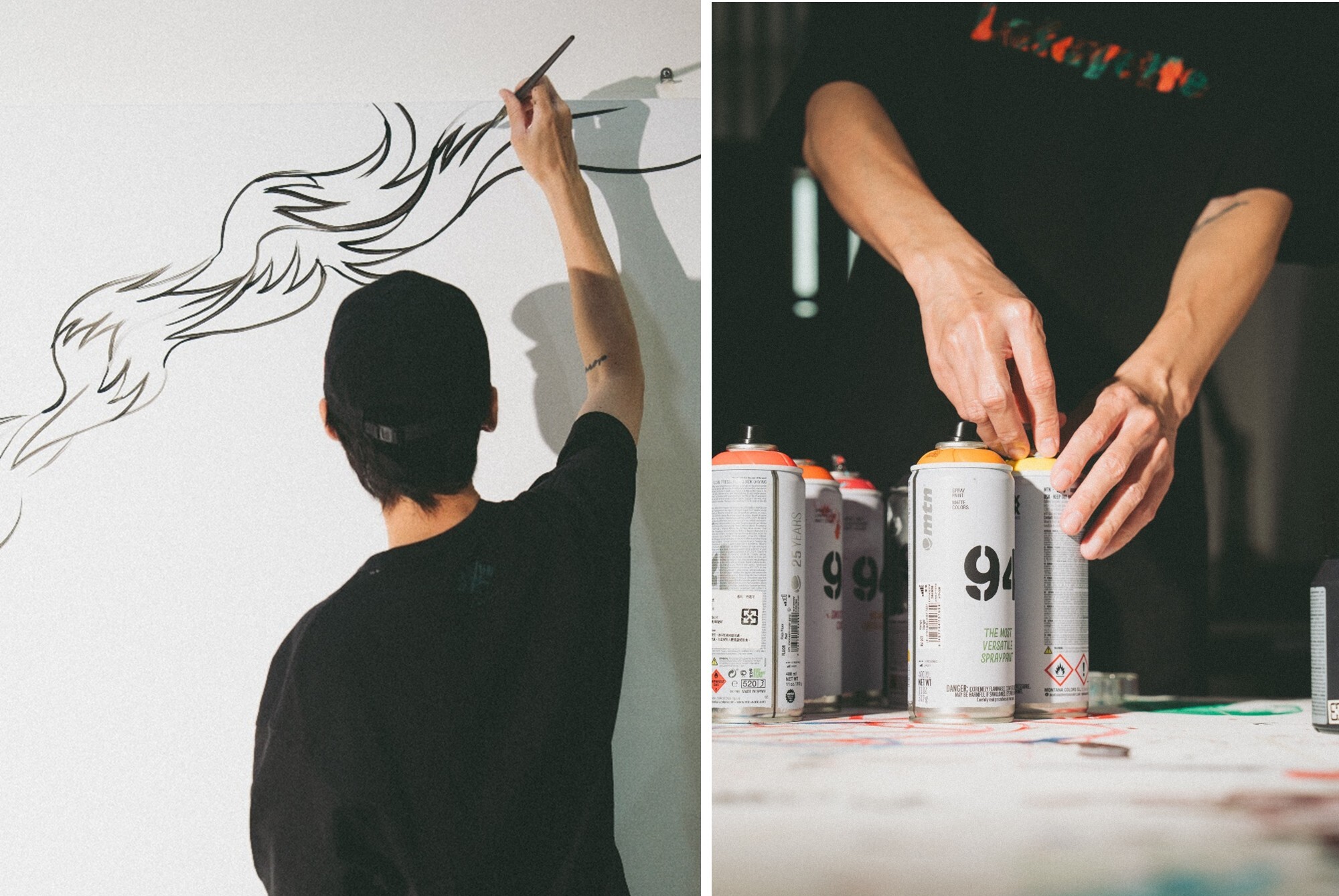 REACH 在創作時會呈現不同的狀態。有時候,只要站在空白的畫布或牆面前,想法便會自然湧現,他便順著感覺一路畫下去。另一種時候,則仰賴日常的積累,在筆記裡記下隨手閃過的念頭、拍下觸動自己的畫面,再慢慢規劃主題,一步步完成。
