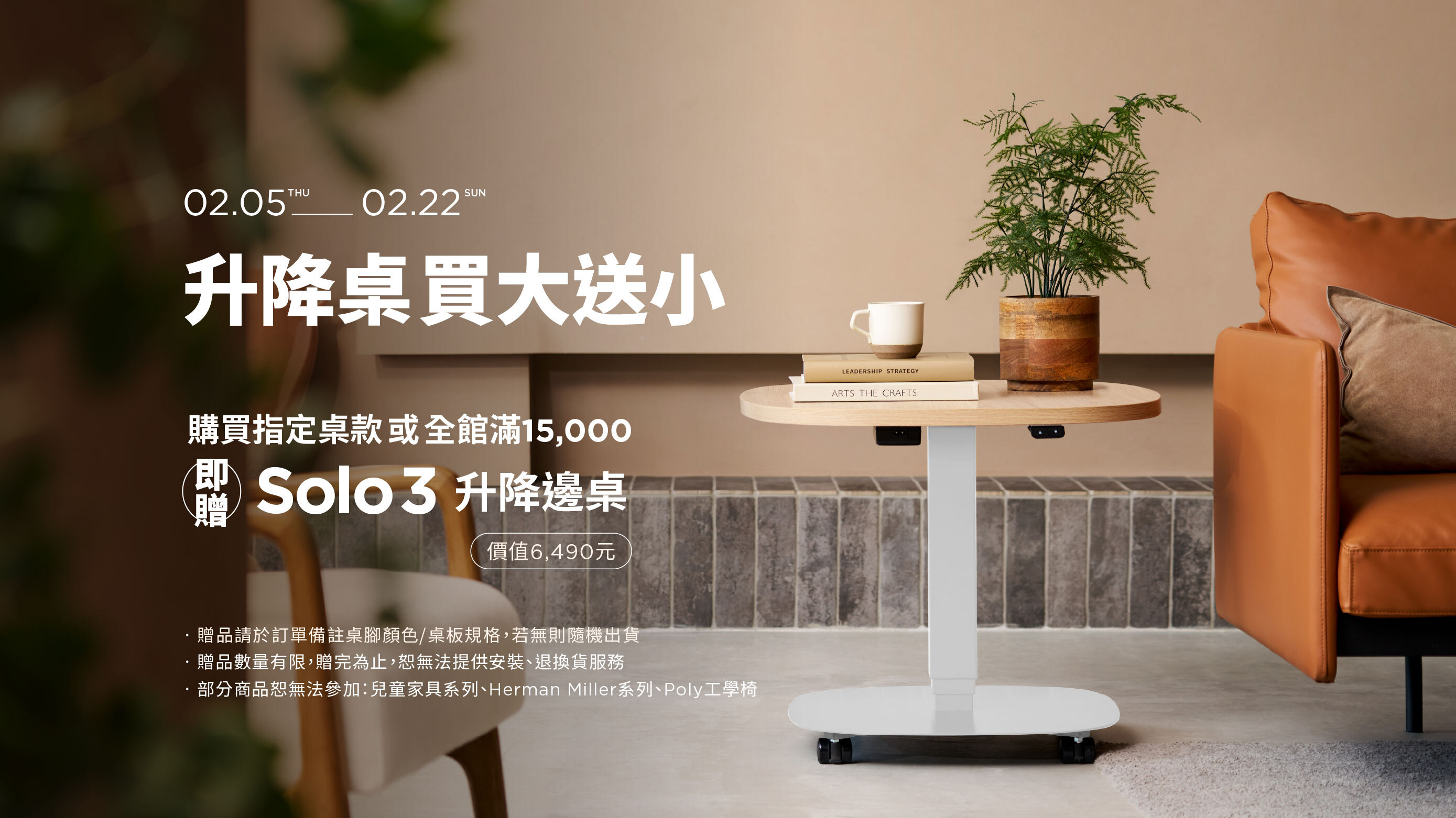 2/5-2/22 指定桌款或滿額贈Solo3 升降邊桌